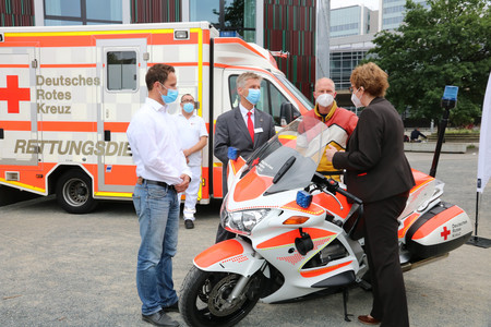 Die niedersächsische Ministerin für Soziales, Gesundheit und Gleichstellung, Daniela Behrens, besuchte im Rahmen eines Rundgangs durch die Innenstadt Hannovers am 22. Juli auch eine Station des DRK-Landesverbandes Niedersachsen auf dem Andreas-Hermes-Platz. Unter anderem sprach Frau Ministerin Behrens hier mit dem Vorstandsvorsitzenden des Landesverbandes, Dr. Ralf Selbach, über die Arbeit der DRK-Rettungssanitäterinnen und Rettungssanitäter. Eingeladen hatte zu dem Spaziergang die Landesgemeinschaft der Freien Wohlfahrtsverbände (LAG FW).